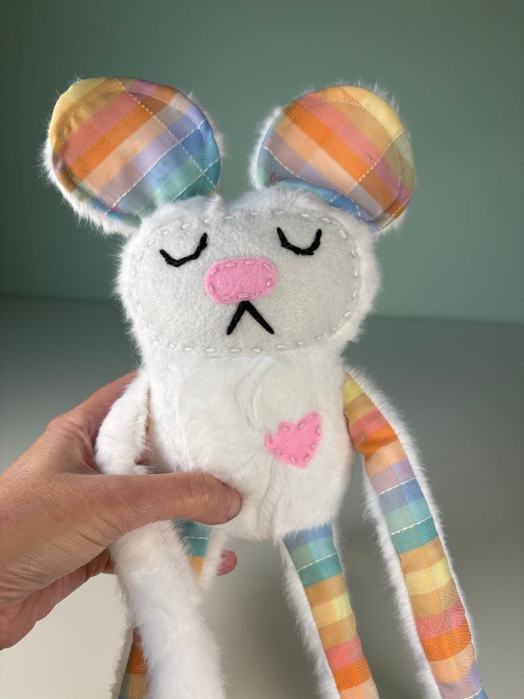 He is lightly weighted with plastic pellets in his limbs and a weighted beanbag in his bottom.