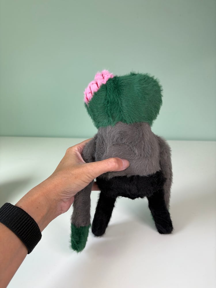 They have hand embroidered faces, safety eyes, vintage buttons and they are not recommended for small children as they have pieces that could be a choking hazard. They are weighted in their arms and legs and they have a beanbag in their base so they sit.