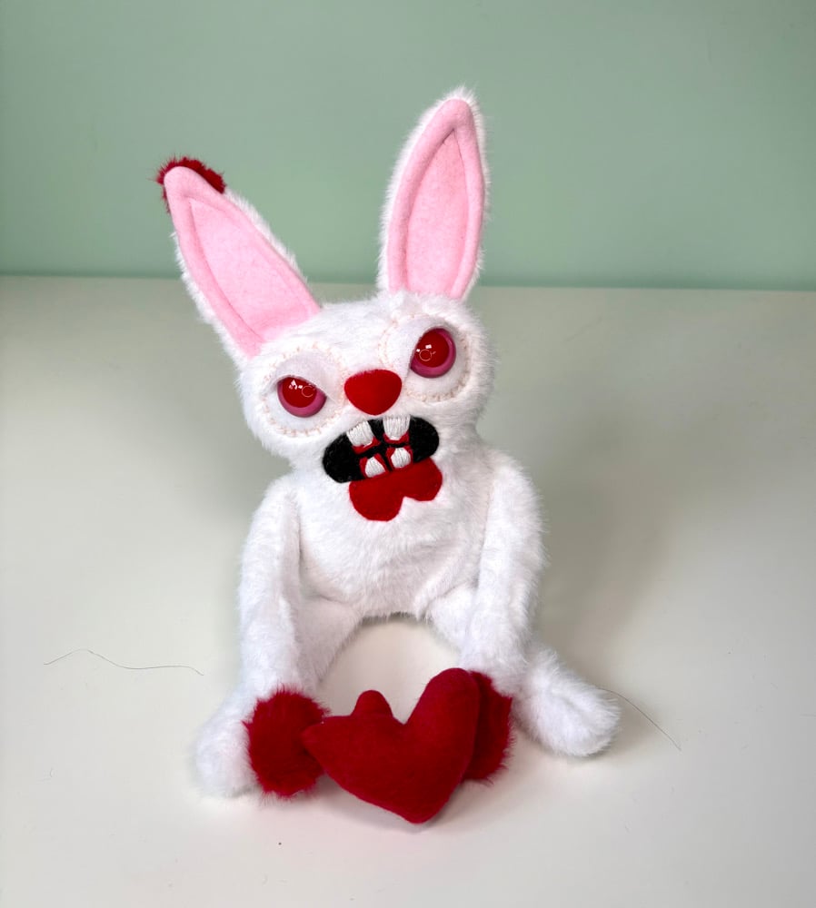 This rabbit was inspired by everyone who ever said my pink eyed pet rabbits (and guinea pigs) looked evil. This guy definitely is.