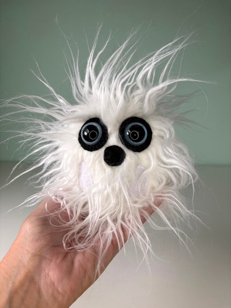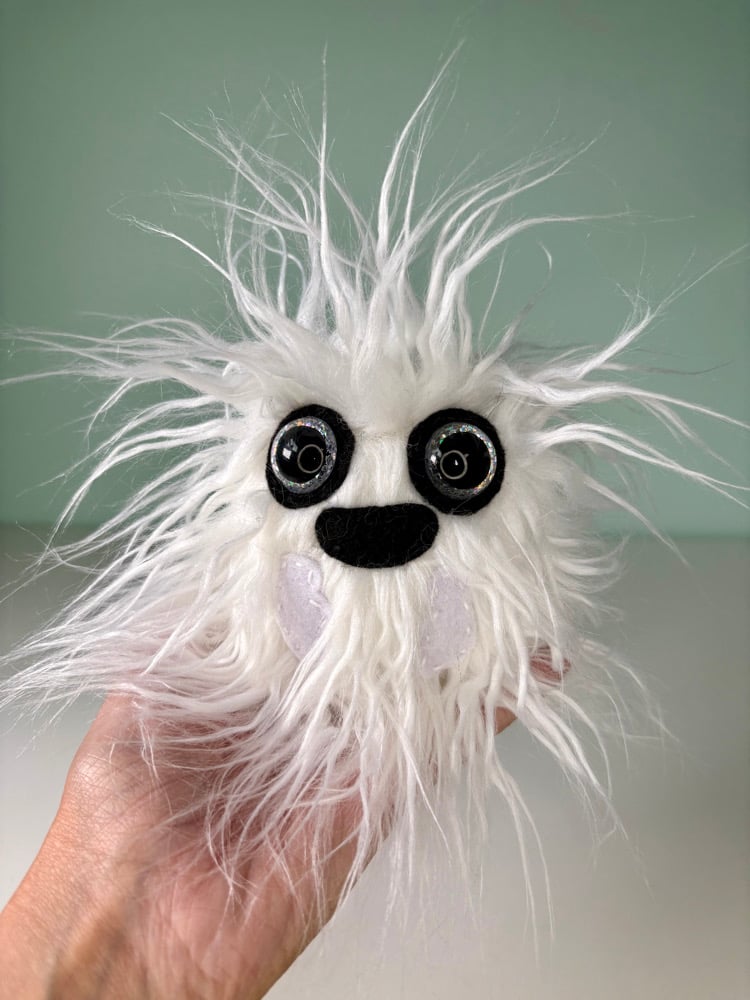 He has hand embroidered details, safety eyes (best suited for ages 3 and up), and he is weighted with plastic poly beads in his base.