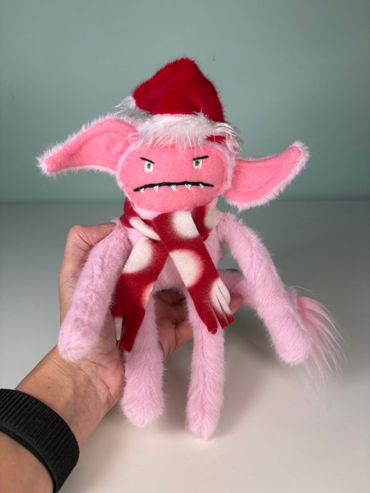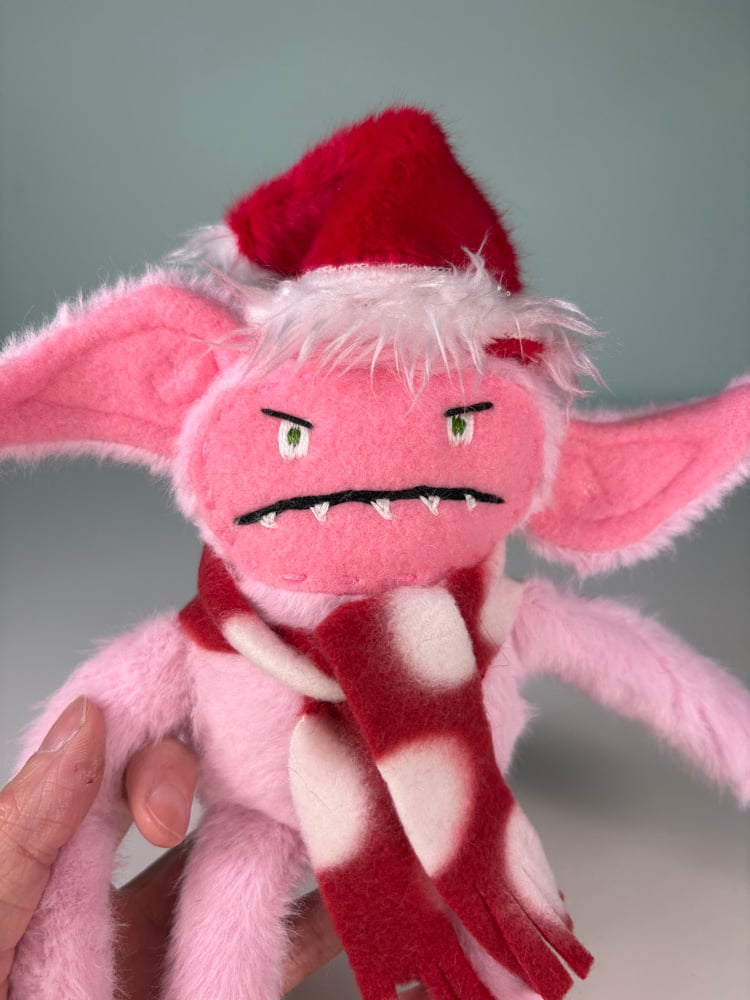 Weighted Hand Embroidered Grumpy Monster - Pink