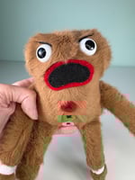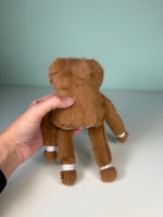 He has hand embroidered details and plastic safety eyes (best suited for ages 3 and up).