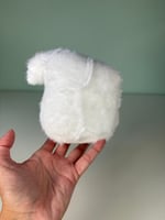 He has hand embroidered details and he is weighted with plastic poly beads in his base.