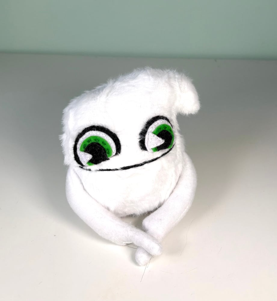 This weighted, ebroidered happy ghost is ready to haunt your home for Halloween . He’s soft and friendly and ready for the fall season.