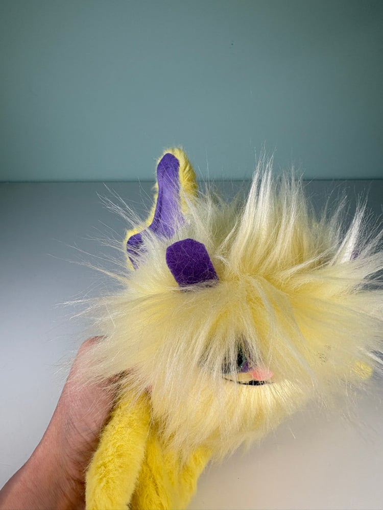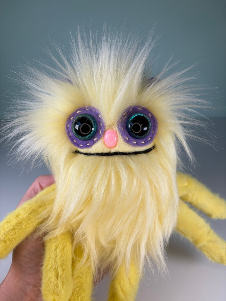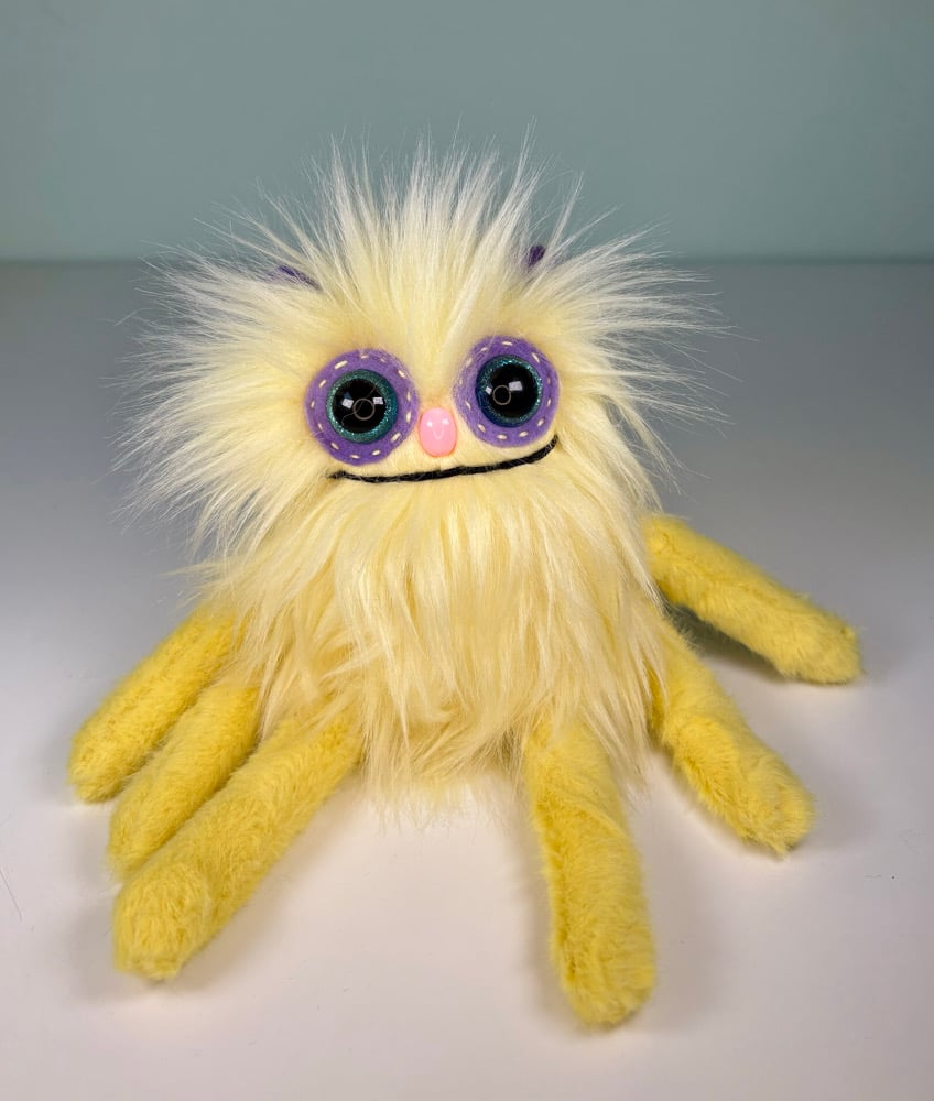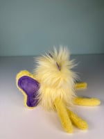 This guy has hand embroidered details, plastic safety eyes (best suited for ages 3 and up), and he is stuffed with brand new fiber fill and weighed with plastic poly pellets.