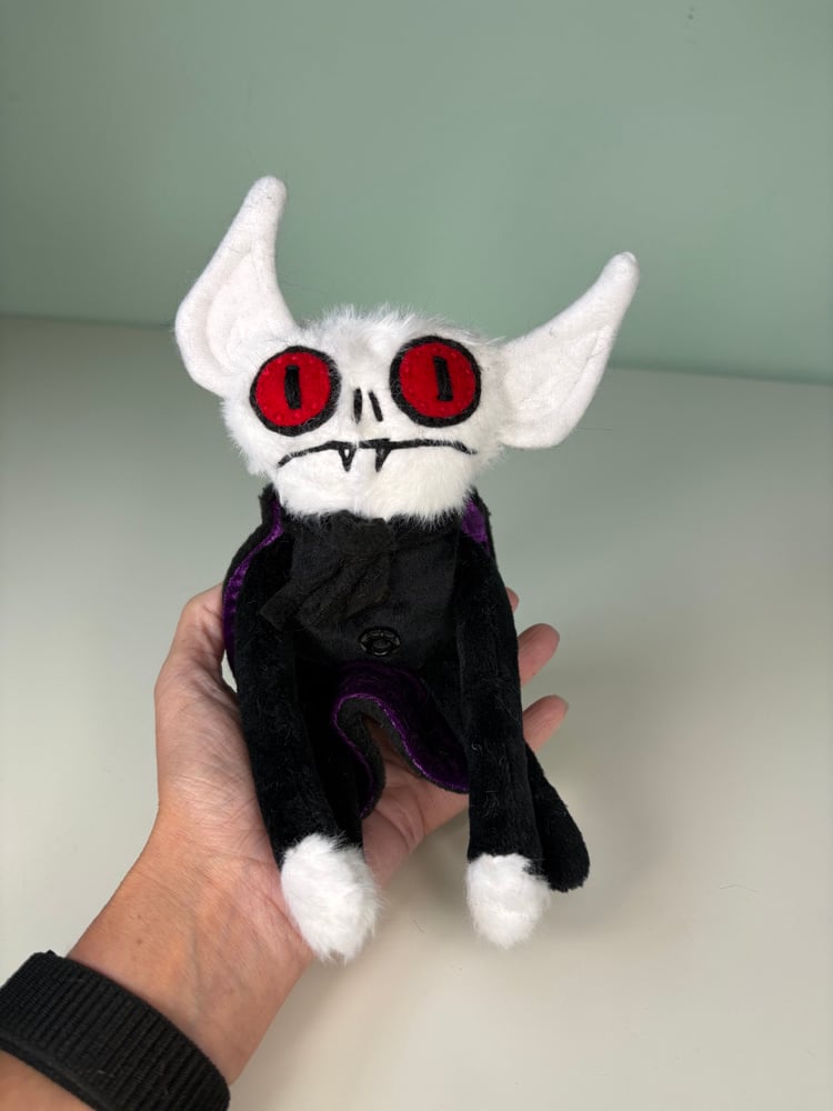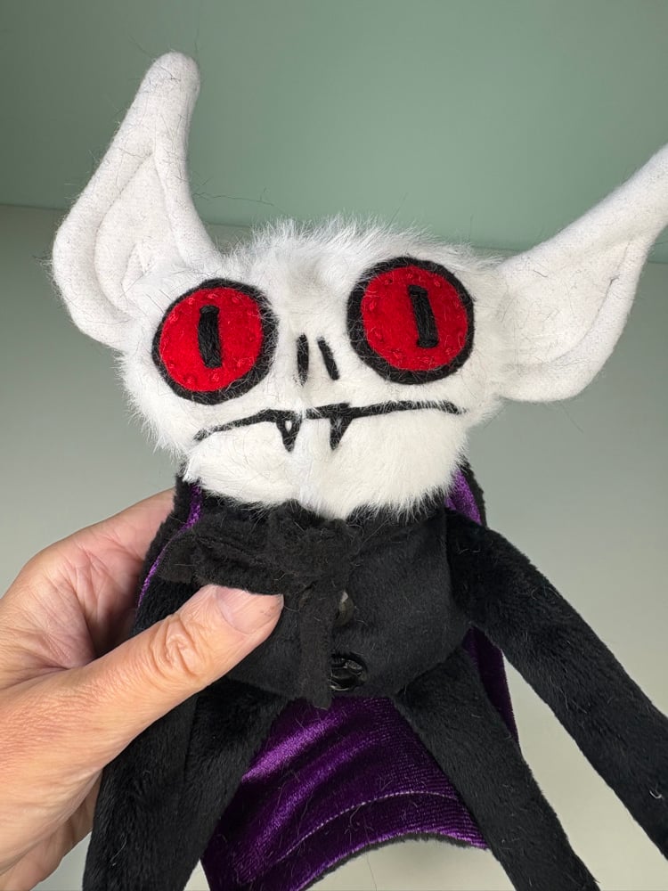These creepy guys have all hand embroidered details and they are weighted with plastic poly beads in his limbs and base and they are stuffed with brand new fiber fill. They have vintage button details that are not suited for small children.