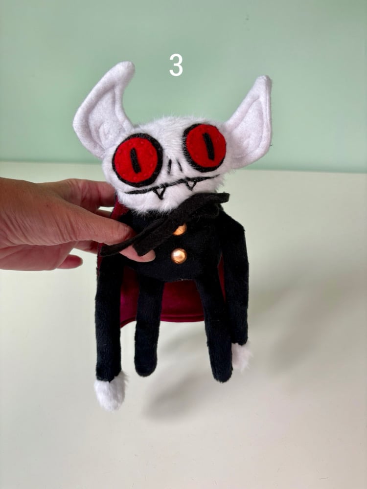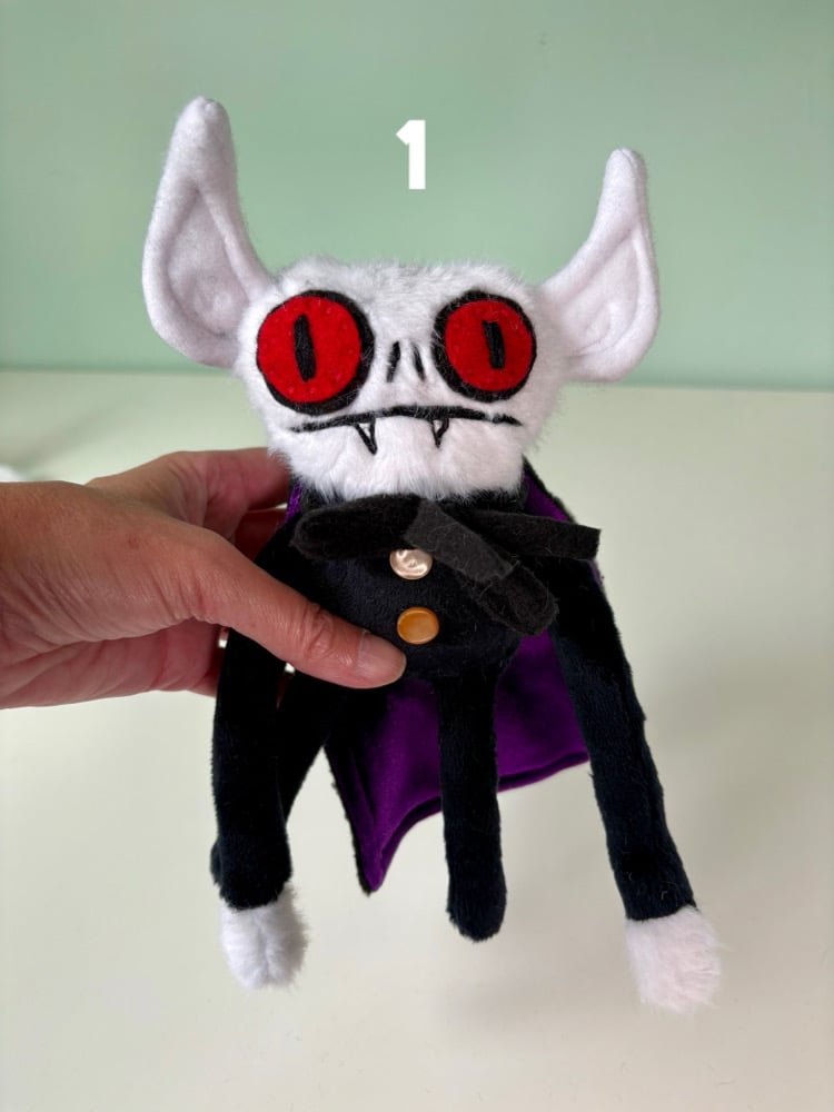 These creepy guys have all hand embroidered details and they are weighted with plastic poly beads in his limbs and base and they are stuffed with brand new fiber fill. They have vintage button details that are not suited for small children.