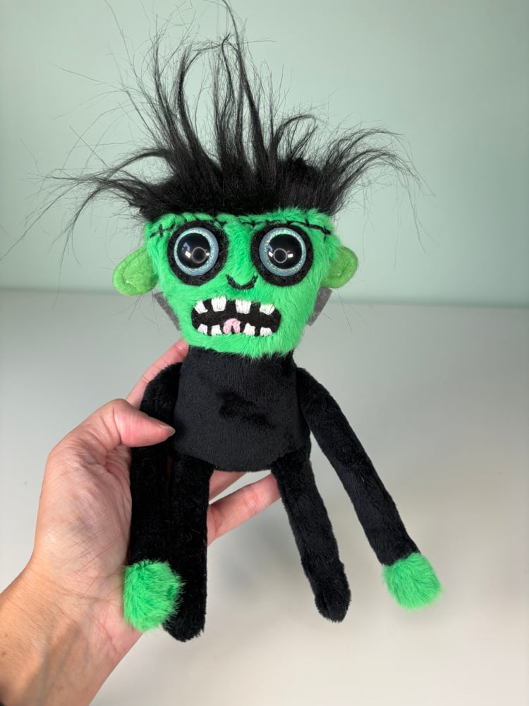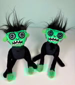 These creepy guys have all hand embroidered details and they are weighted with plastic poly beads in his limbs and base and they are stuffed with brand new fiber fill. They have vintage button details that are not suited for small children.