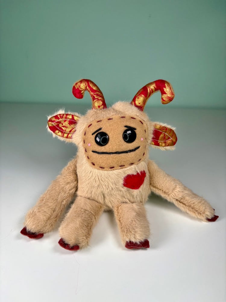 They are weighted with plastic poly pellets in their arms, legs and they have a bean bag in their bases. Their faces have hand embroidered details. They have safety eyes, which are best suited for ages 3 and up.
